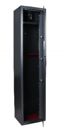 Hecho de acero sólido, cuenta con una fuerte construcción. Se pueden usar dos pernos de anclaje unidos para molerse al piso. Pesa más de 120 libras, lo que significa difícil de alejarse. Mantiene a los niños seguros. Evita que otros alcancen el interior. No se necesita una instalación: el orificio del suelo seguro y previamente previamente prevista. Abra la caja fuerte con teclados digitales o teclas incluidas de acuerdo con el manual. Las baterías están disponibles en cada paquete. Diseñado para almacenar rifles o escopetas, está equipado con una rejilla de almacenamiento de 5 pistolas y una pequeña caja de seguridad para almacenar pistola, munición u otros pequeños objetos de valor. El piso interior acolchado previene los rasguños en las armas de fuego. La pistola más larga permitida no es más de 50 pulgadas (almacenada verticalmente).